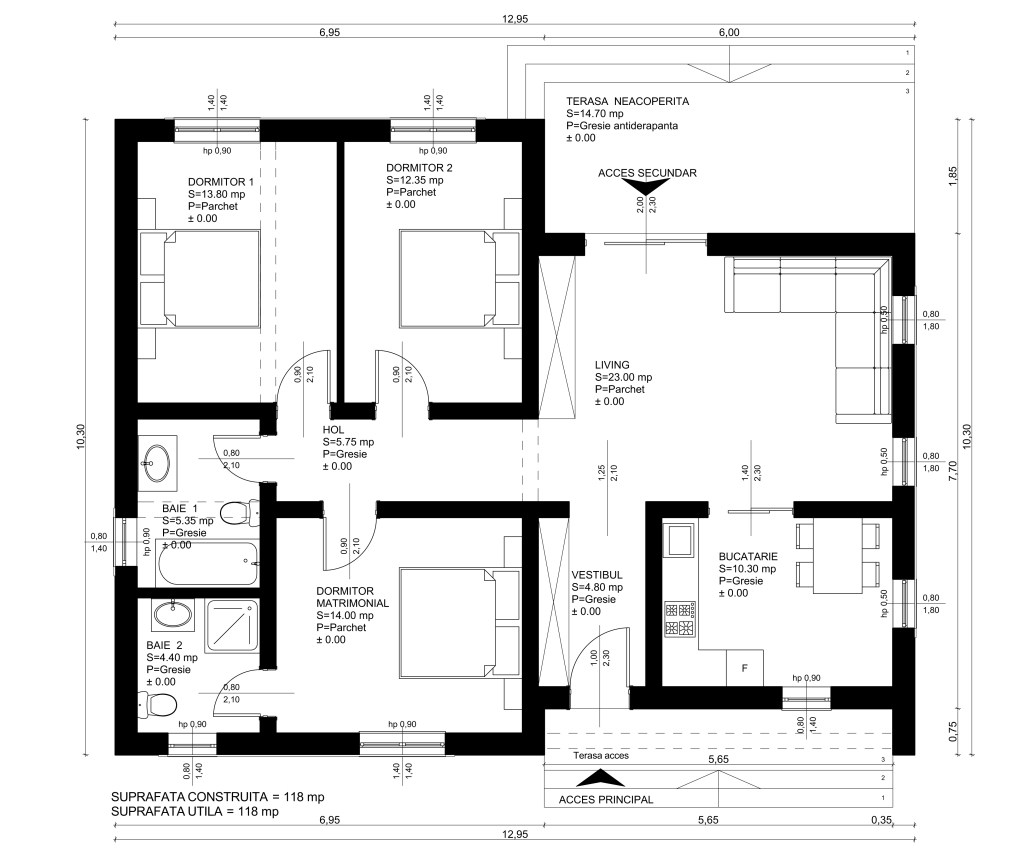 Casa Parter PD04 – suprafata construita la sol de 118 mp, casa are o suprafata desfasurata de 93.70 mp. Locuinta autorizata in Jud. Arad. – in anul 2019, in curs de finalizare